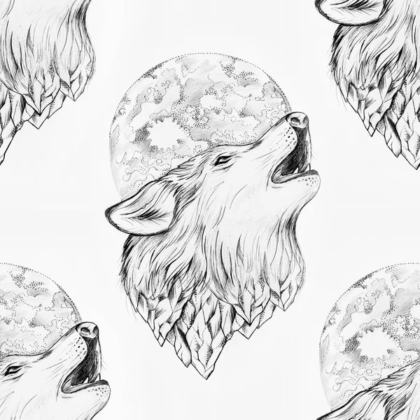 волк воет на луну рисунок карандашом