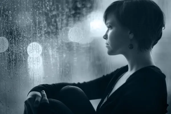 Foto Devushka S Igrushkoj Krolika V Rukah Sidit Na Mokrom Podokonnike U Otkrytogo Okna Art By