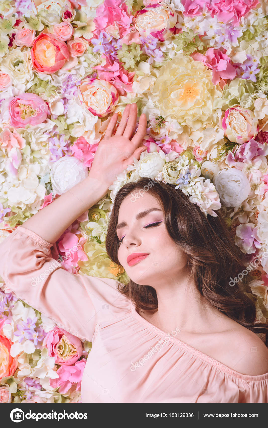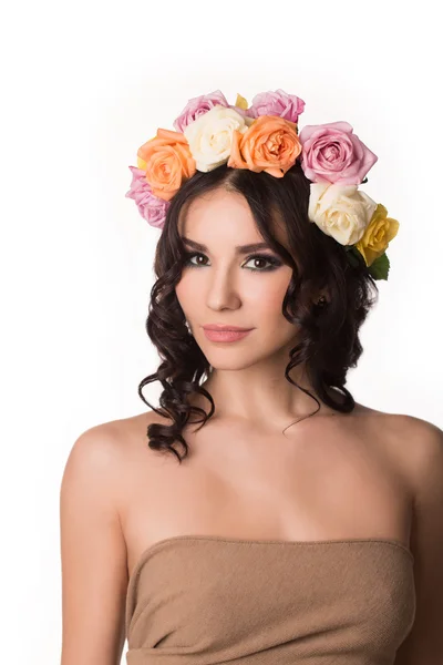 Devushka S Venkom Iz Cvetov Na Golove Fotografiya Perfectstock