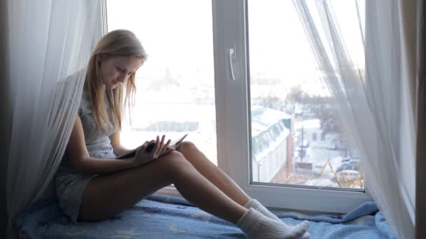 Devushka Entuziazmom Chitaet Knigu Sidya Podokonnike Stokovyj Videorolik C Lexashka 244621040