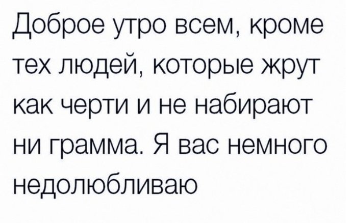Dobroe Utro Vsem Krome Teh Lyudej Kotorye Zhrut Kak Cherti I Ne Nabirayut Ni Gramma Ya Vas Nemnogo Nedolyublivayu Otkrytka 422134 Atkrytka Atkritka Com