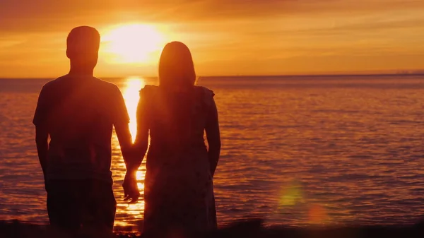 красивый закат влюбленная пара под зонтиком.