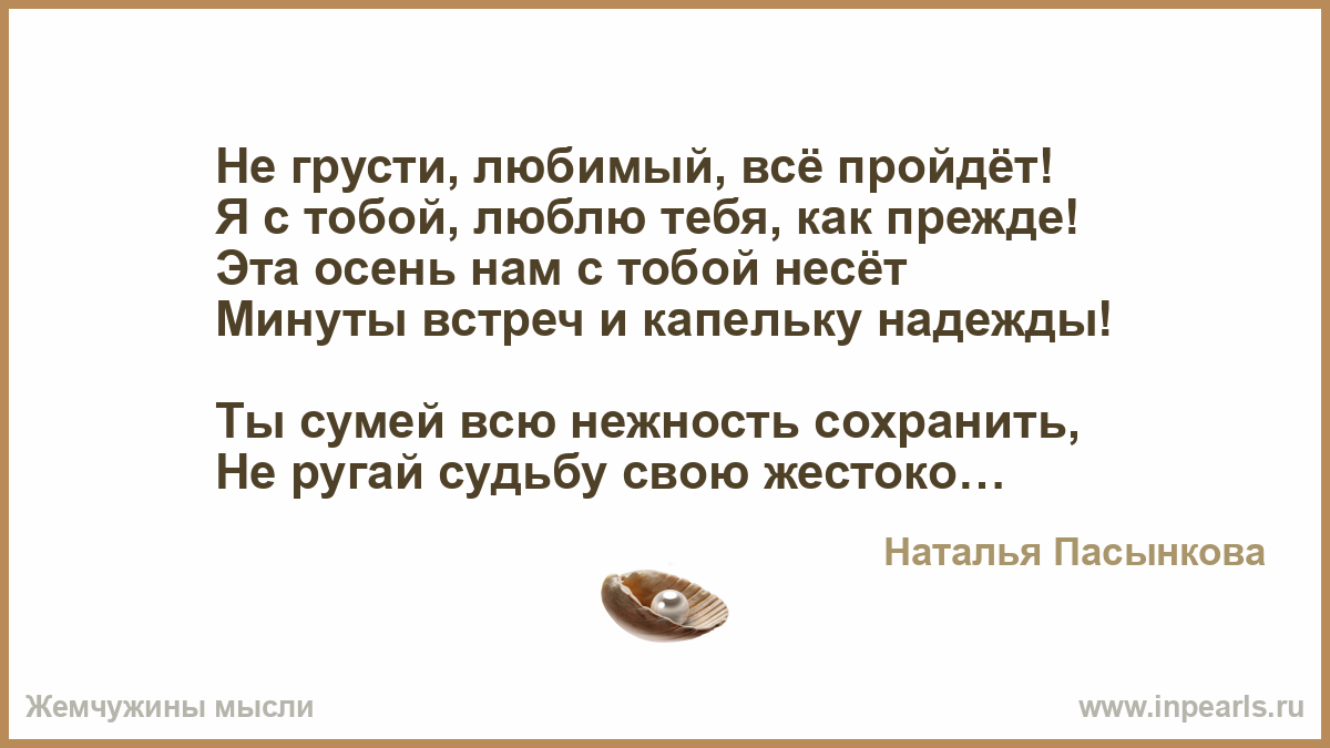 Ne Grusti Lyubimyj Vsyo Projdyot Ya S Toboj Lyublyu Tebya Kak Prezhde Eta Osen Nam S Toboj Nesyot Minuty Vstrech I Kapelku Nadezhdy Ty Sumej Vsyu Nezhno