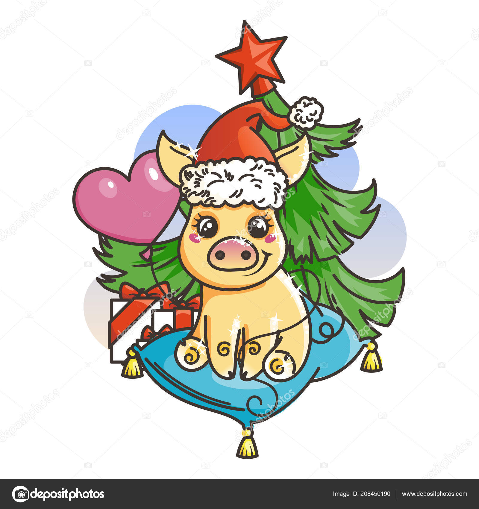 Cute Cartoon Pig In Love With Holiday Tree Symbol Of New 2019 Year Chinese Horoscope Illyustracii Svini Illyustraciya Dereva Porosyata V Iskusstve