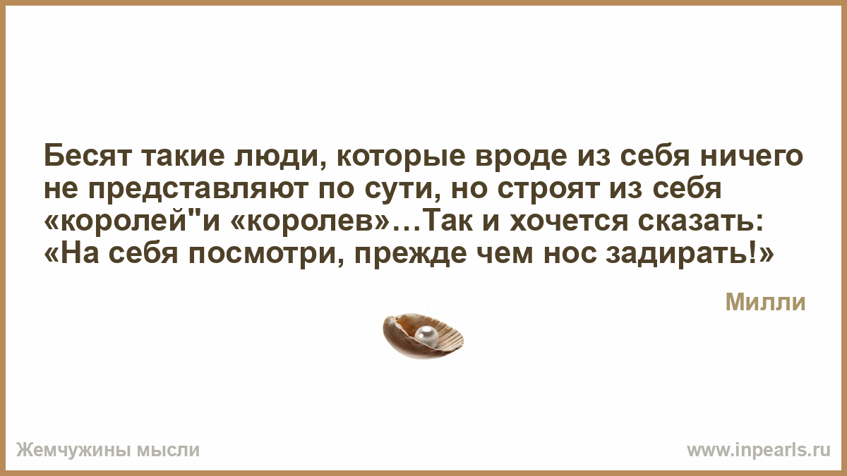 Besyat Takie Lyudi Kotorye Vrode Iz Sebya Nichego Ne Predstavlyayut Po Suti No Stroyat Iz Sebya Korolej I Korolev Tak I Hochetsya Skazat Na Sebya Posmotri Prezhde Chem Nos Zadirat